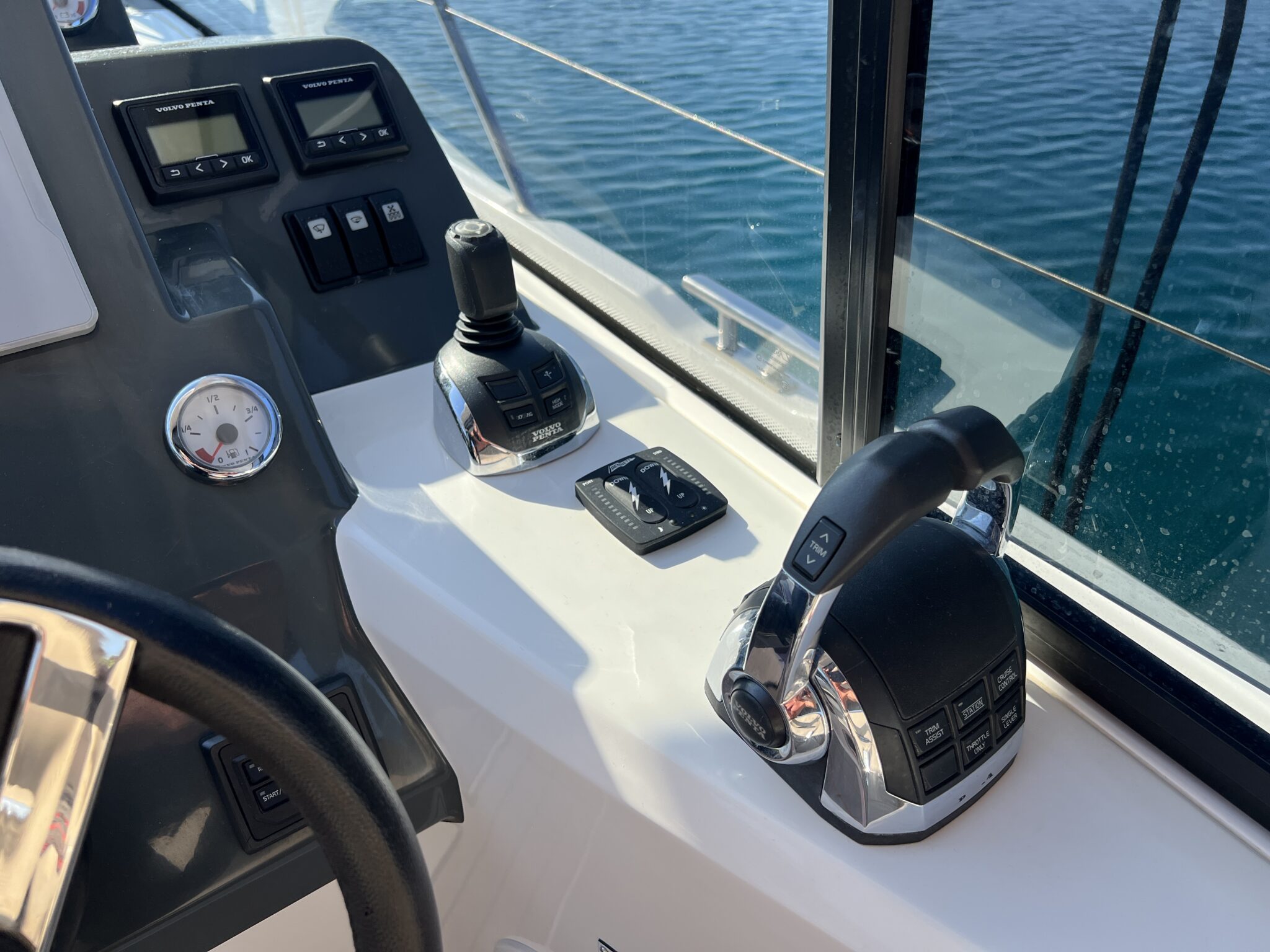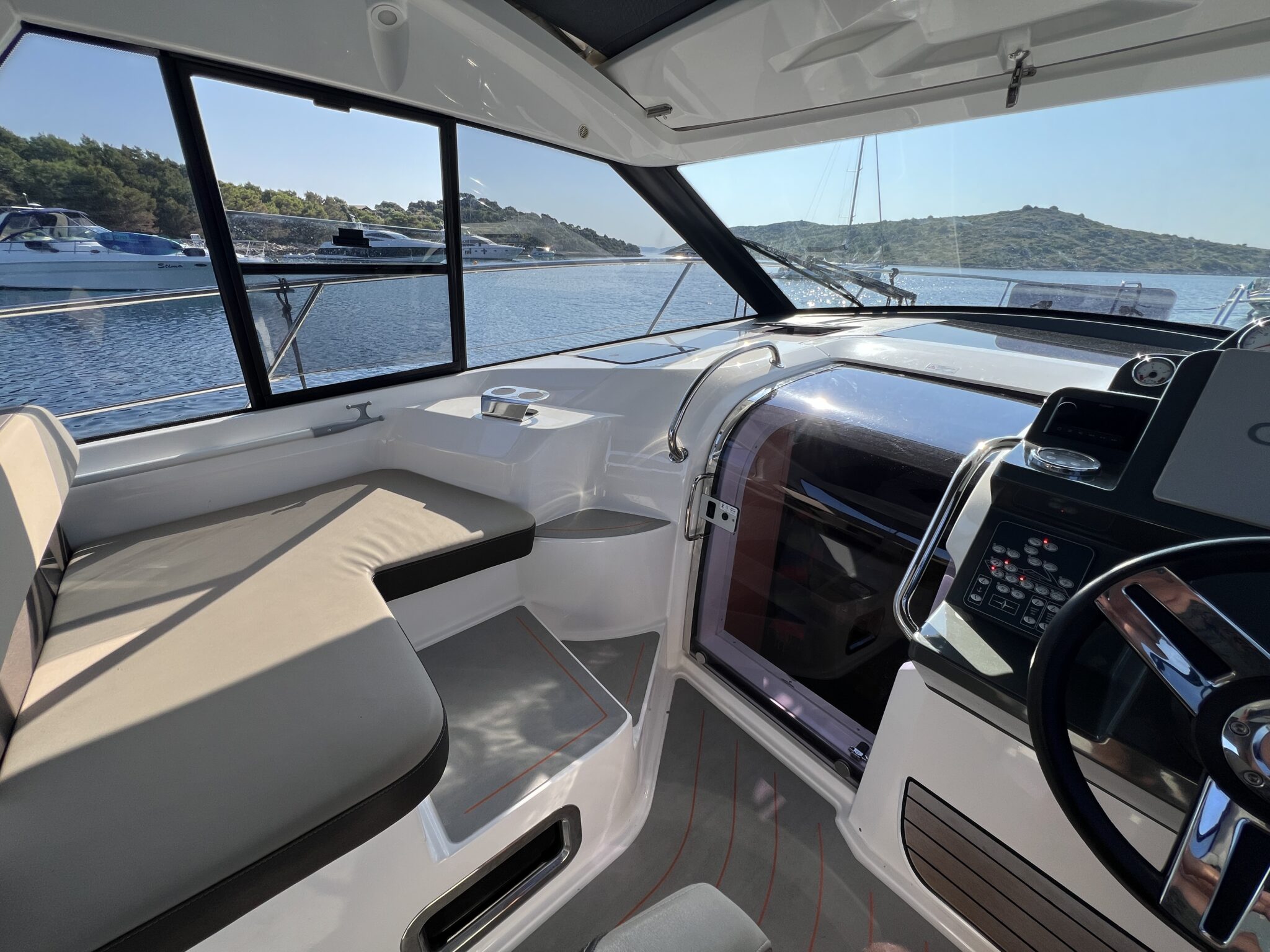Powered by Volvo Penta D3 diesel engines and equipped with joystick control, the yacht ensures precise maneuvering and smooth handling, even in busy marinas. Perfect for those who want to skipper with ease and confidence.